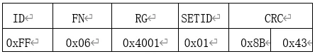 FF 06 40 01 01 8B 43ID: 0xFF (Used when the sensor address cannot be confirmed),0x01~0xFEFN: 0x06RG: 0x4001 Address register address 2 bytesSETID:(0x01~0xFE)set the address of XZ-MUS-LTH
