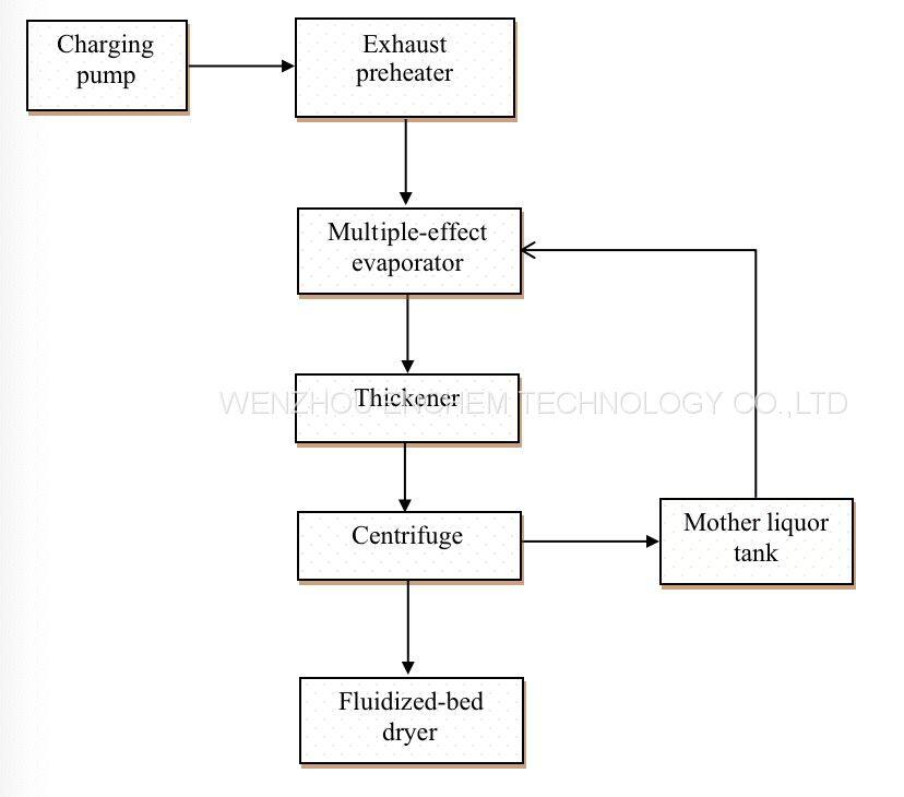 1. Crystalline powder: ammonium sulfate solution, pre-concentration with a multiple-effect evaporator or a MVR evaporator, and the oversaturated liquor is solid-liquor separated in a centrifuge, and the wet crystalline powder are dried in a fluidized bed dryer.