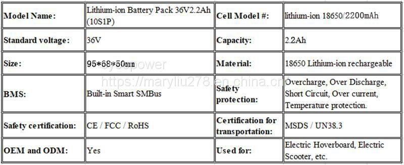 36V2.2Ah HA007-Electric Skateboard Electric Scooter Replacement Battery Pack With Domestic 18650 2200mah And BMS