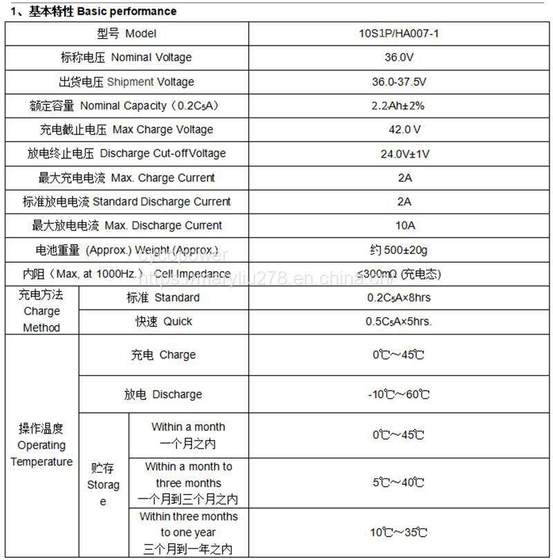 36V2.2Ah (10S1P) Lithium ion Battery Pack HA007 With Chinese 18650 Cell and BMS for Electric Skateboard