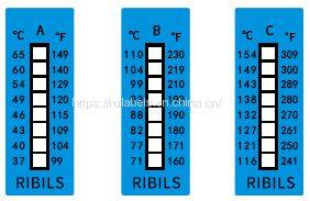 Irreversible type, non reversible temperature indicating labels, thermometer labels