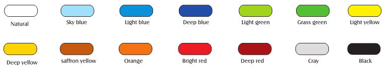 Green, Red, Orange, Yellow, Blue, Purple, Gray, White, Black etc. Any color is available