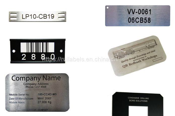 Ruilabels also can provide a wide range of different types of stainless steel, anodised aluminium tags, labels, control panels and nameplates. Cut to any specified shape, size and thickness all tags and plates can be tailored to a customer’s exact needs.
