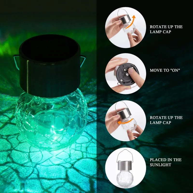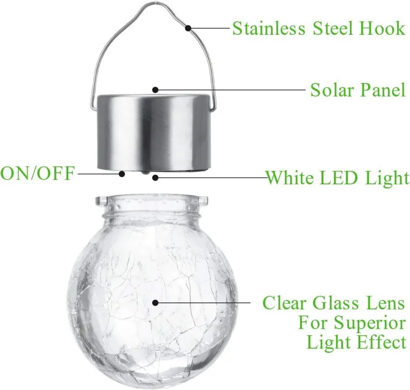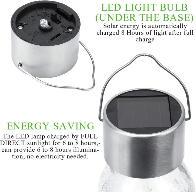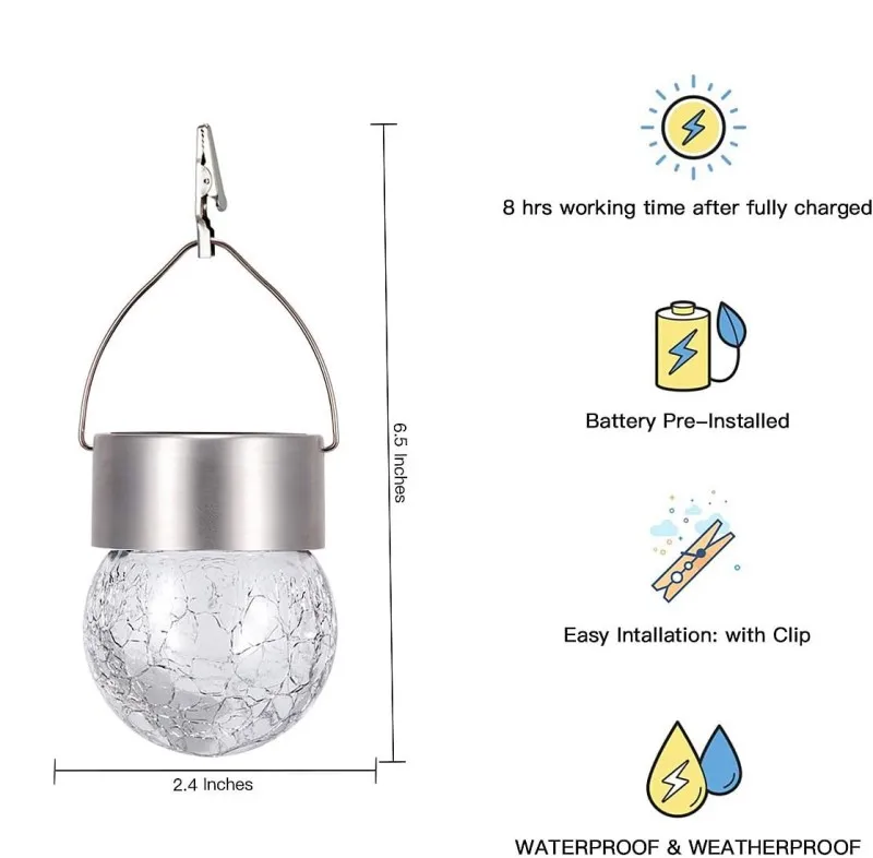 Waterproof Patio Wedding Hanging Mason Jar Lights, Warm Crack Glass Bottle Solar Jar Light