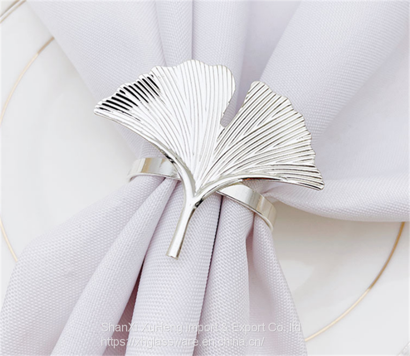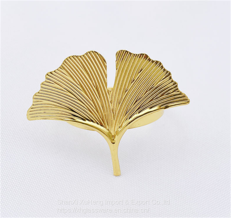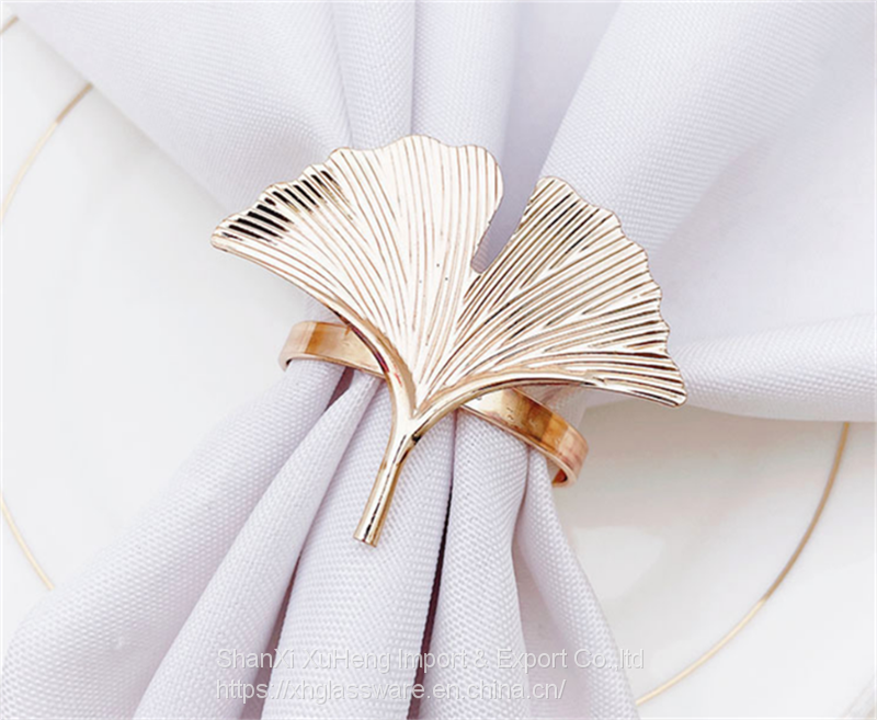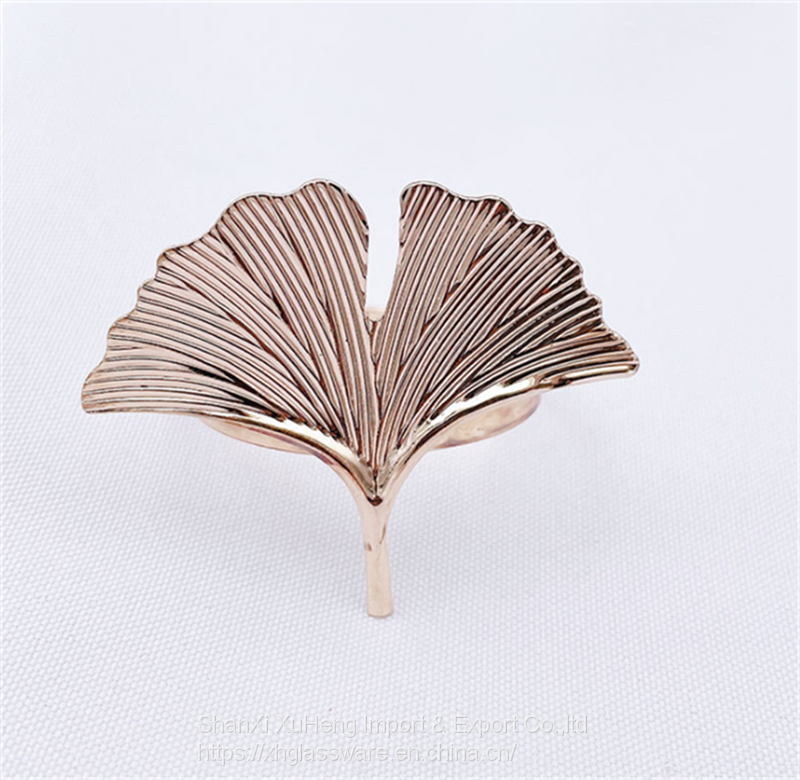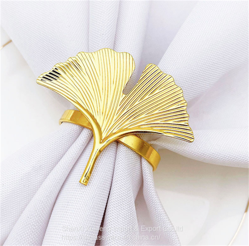 Ginkgo Leaf Plant Metal Napkin Rings Gold Table Cloth Napkin Buckle Holders