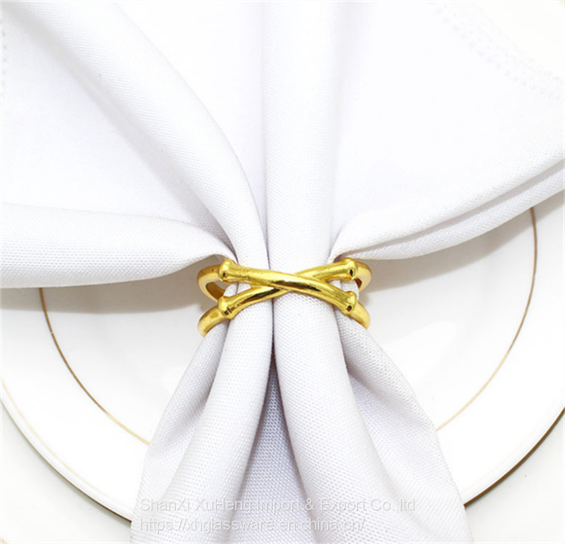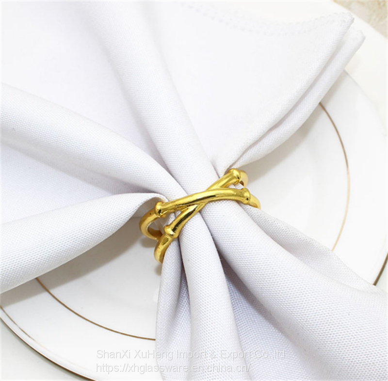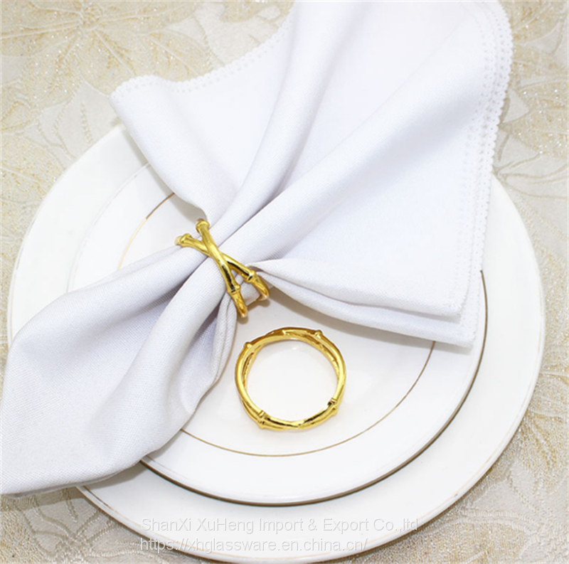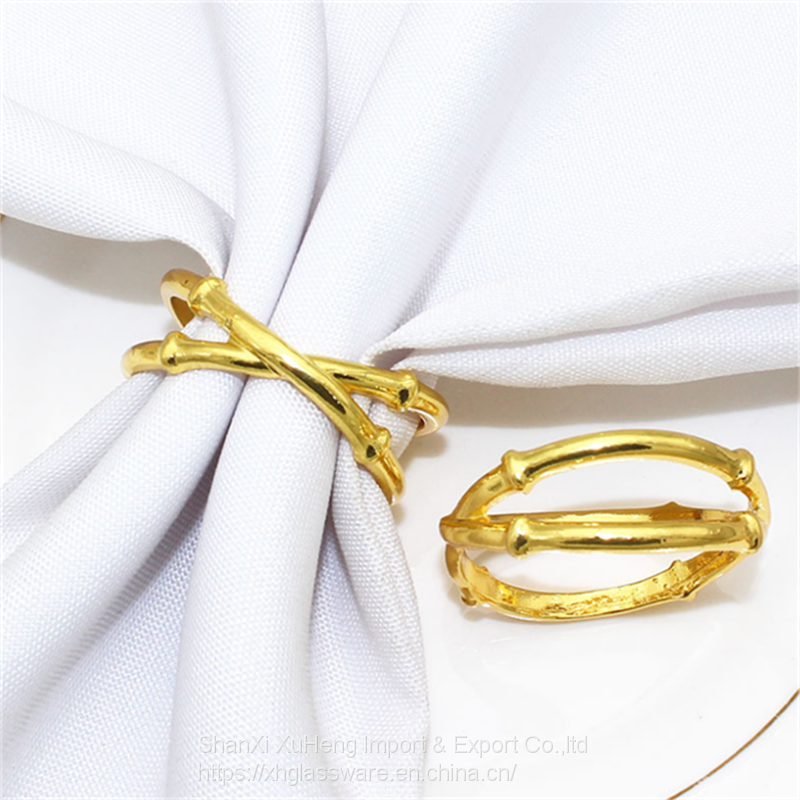 Spot Simple Style Bamboo Metal Golden Buckle Napkin Ring For Event Decoration