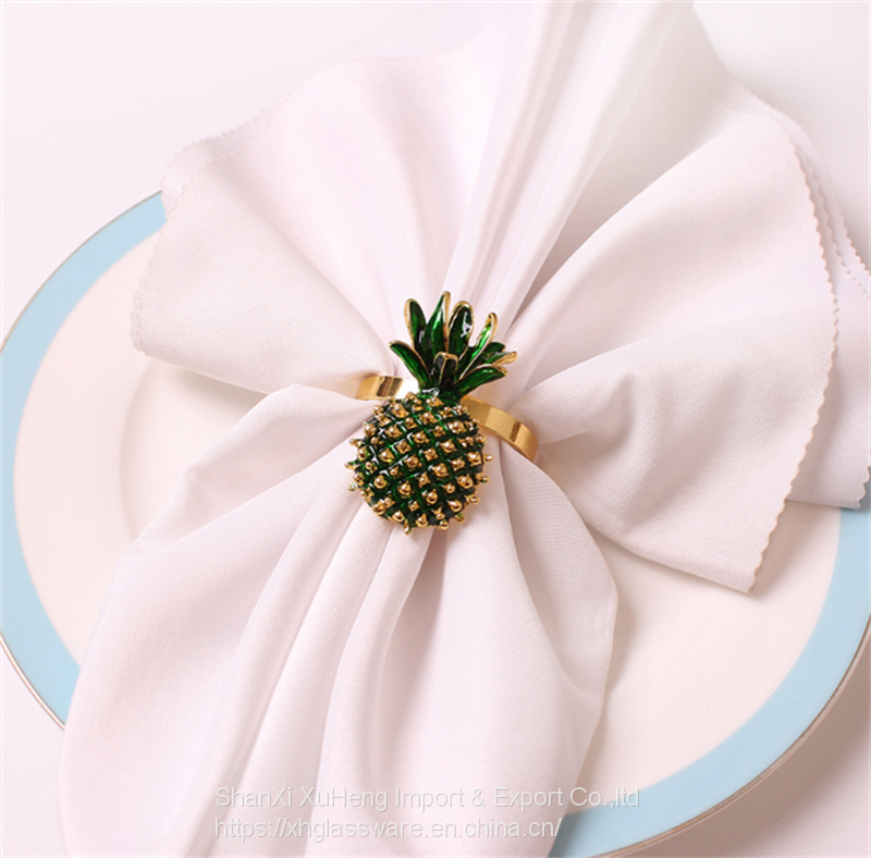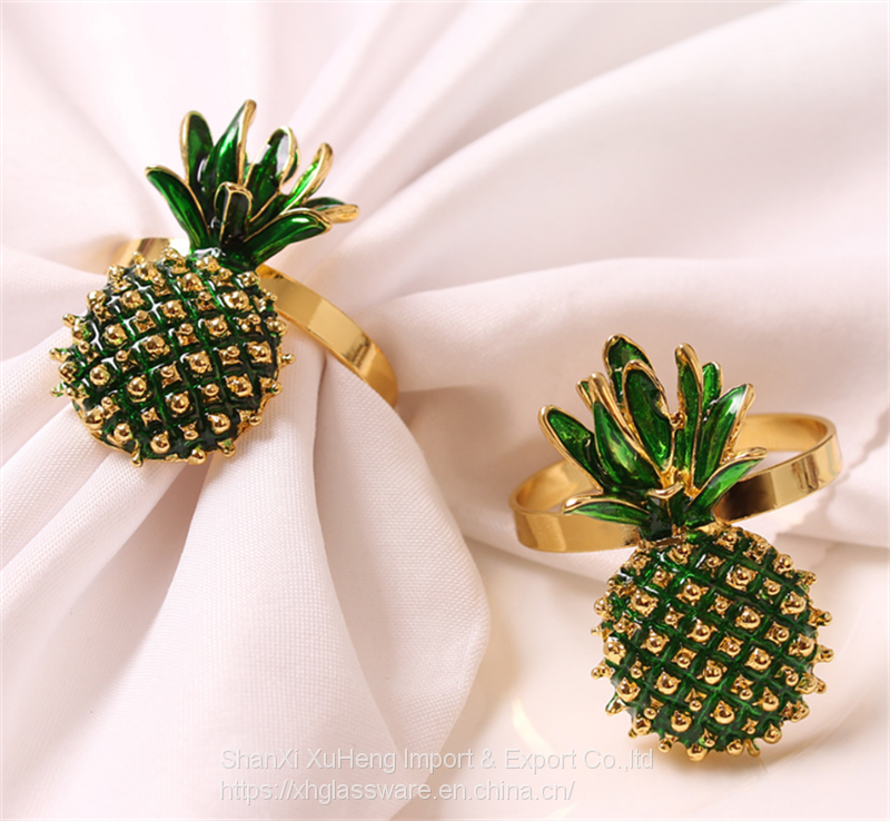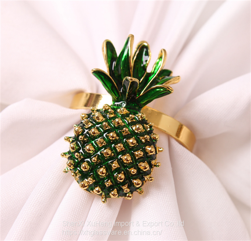 Green And Gold Colored Pineapple Metal Napkin Ring With Diamond Wholesale