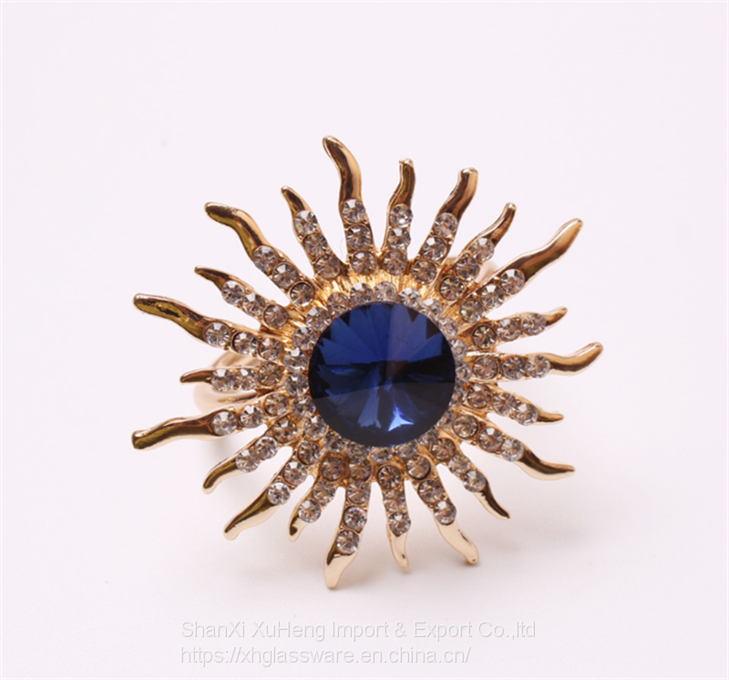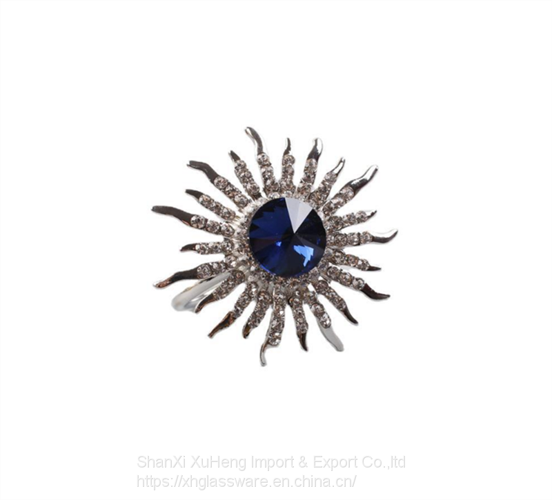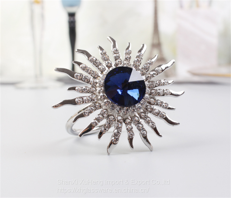 Sparkling Blue Artificial Crystal Diamond Sun Flower Rhinestones Napkin Rings Holders