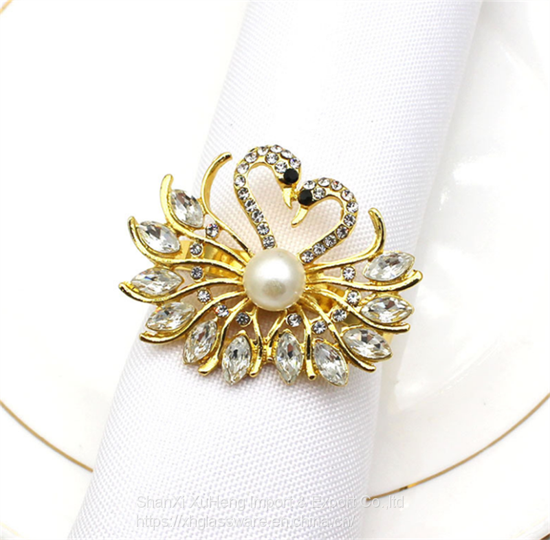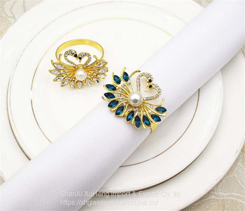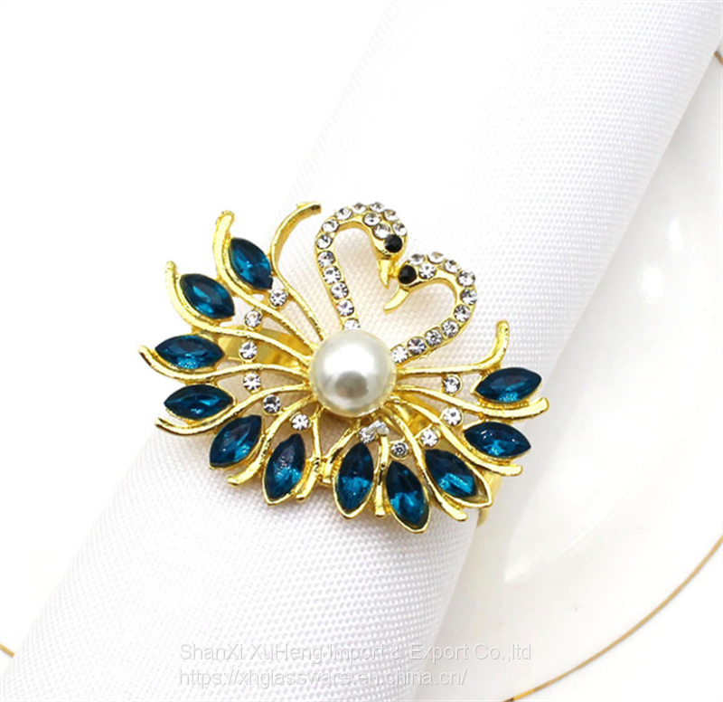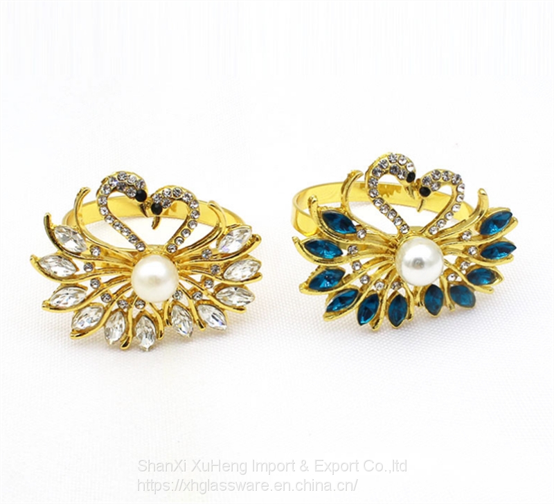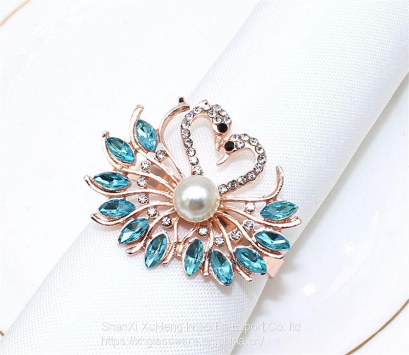 Factory Make Wedding Rhinestone Turquoise Crystal Swan Napkin Rings