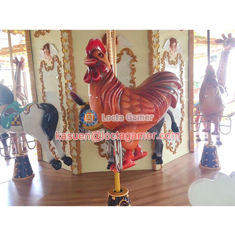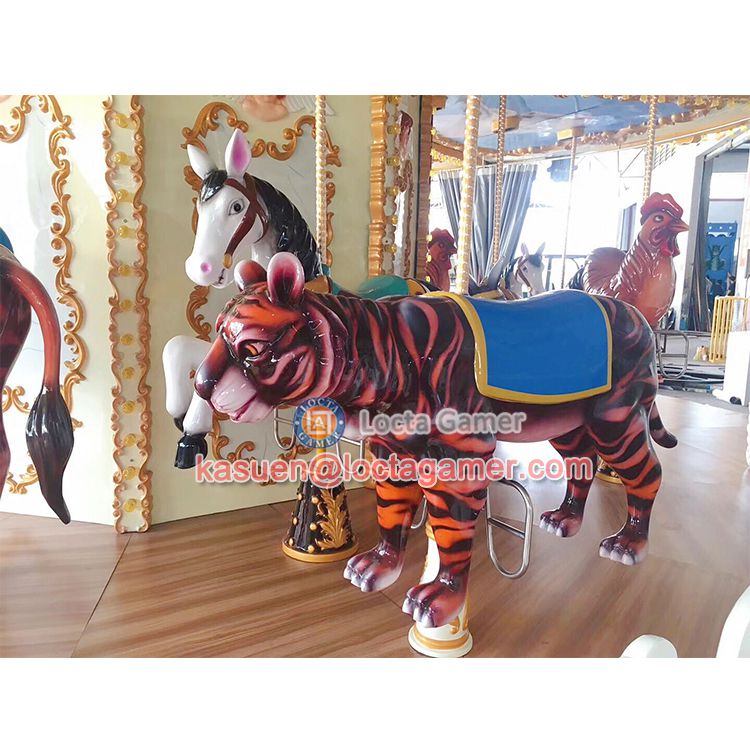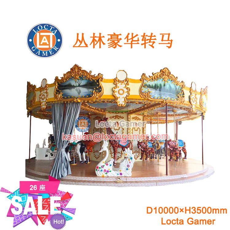 The luxury carousel is the carousel in our usual playground. It is a vertical axis type of single-rotation undulating entertainment machine, is simulation of the horse race hall and the design of entertainment. The top of the product with a colored cone-shaped ceiling, ceiling of the circle with colorful glass fiber reinforced plastic decorative panels, more luxurious style, just like the gorgeous race hall. After the start of the equipment, gold and silver, glittering, horses, horse racing, forming a galloping scene, passengers as if participating in a horse race, all feel relaxed and happy, fun!