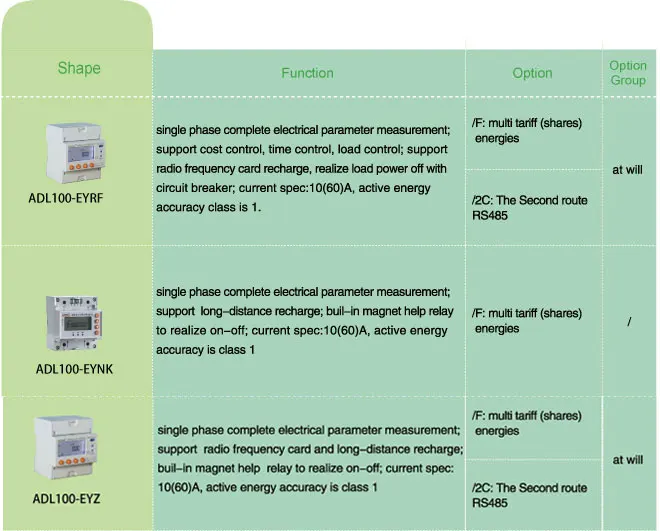 ADL100-EYNK single phase pre-paid meters with intro-control are used for calculating the single active energy respectively on the frequency of 50/60 Hz. The built-in magnetic of meter can keep the relay on and off .It also supports RF card or remote recharge , load controlling and RS485 communication etc. meet the related technical requirements of electronic power meter in the IEC62053-21, IEC62053-22 standards.Parameters