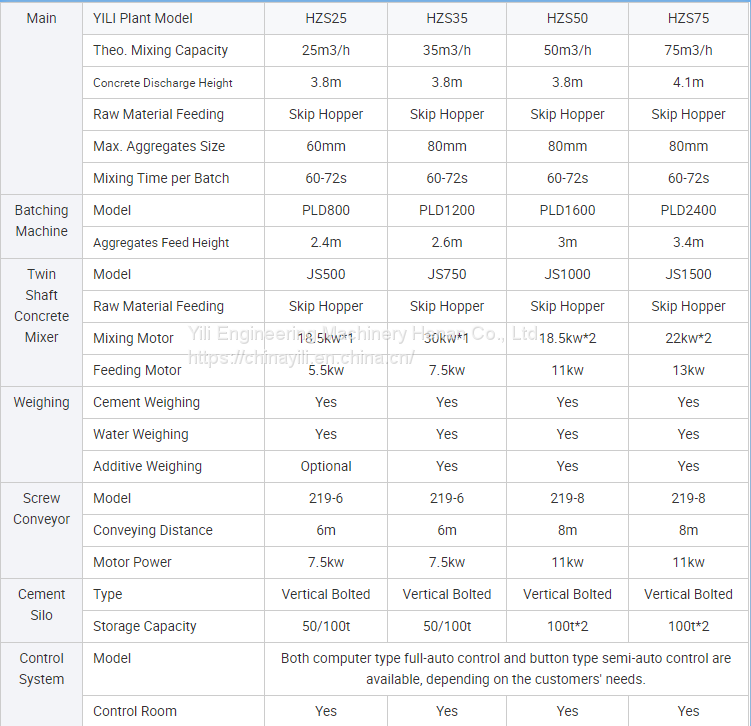 Yili Engineering Machinery Co., Ltd. is a professional factory specializing in manufacture, design and service for concrete mixing machines such as concrete batching plant, concrete mixer, dry powder mortar mixing plant, stabilized soil mixing plant, concrete batching machine, concrete truck, cement silo, screw conveyor etc.