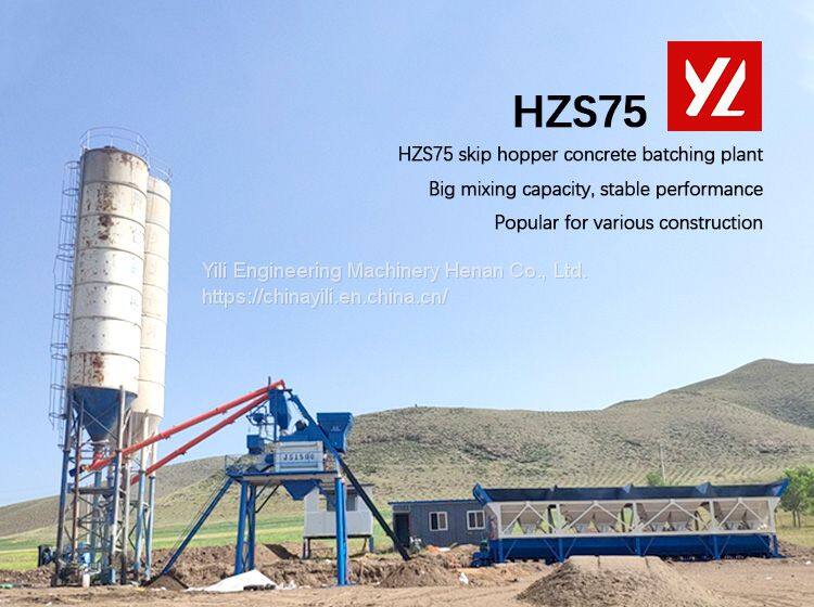 China Brand Yili Hzs75 With Conveyor Belt Concrete Plant Dry Concrete Mixing Station