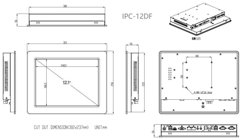 [IPC-12DF] 12.1 inch touchscreen industrial panel pc with HDMI