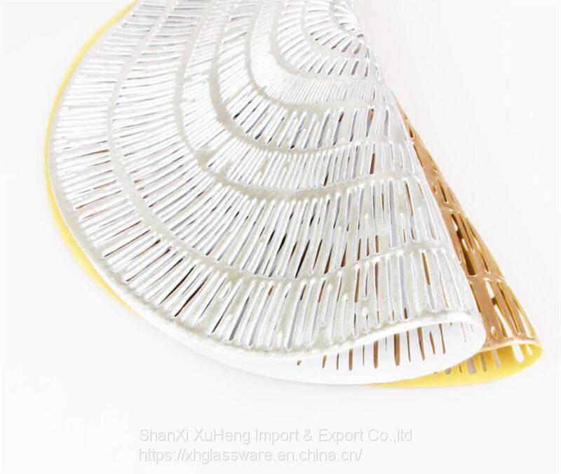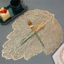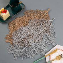 Stocked Coral Anti-slip PVC Leaf Shaped Gold Placemat For Decoration