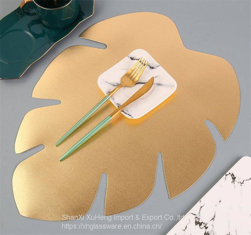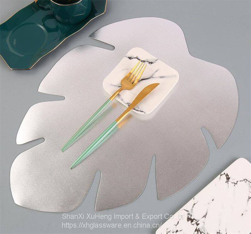 New Leaf Shape Plastic Placemats Colored Metallic Dining Table Mats Wholesale