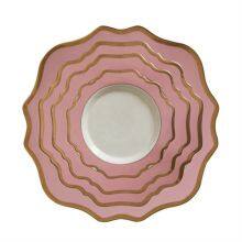 Customized Porcelain Dinnerware Set Pink Sun Flower Shaped Ceramic Tableware Plates With Gold Rim For Wedding Event