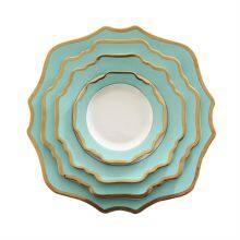 Gold Rimmed European Style High Grade Aqua Green Colored Porcelain Ceramic Charger Plate Dinner Set Tableware