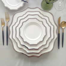Silver Rimmed Ceramic Tableware Wedding Dessert Plate Nordic White Sun Flower Dinnerware Plates Sets