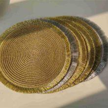 - Woven Round Decorative Dark Gold Place Mat With Fringe for Wedding Party