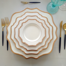 Luxury Home Bone China Dinnerware Western-style Golden Rim White Ceramic Wedding Dinner Plate Sets