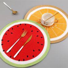 PP Woven Round Placemat Cartoon Fruit Dining Table Plate Mat Bowl Watermelon Lemon Drink Coasters Kitchen Accessories Home Decor