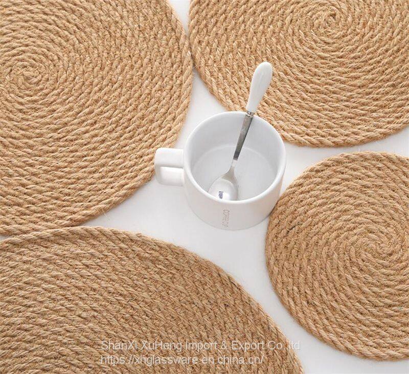 Round Cotton Rope Woven Gourd Grass Coasters Insulation Place Mat Non Slip Home Table Linen Pad For Home Kitchen
