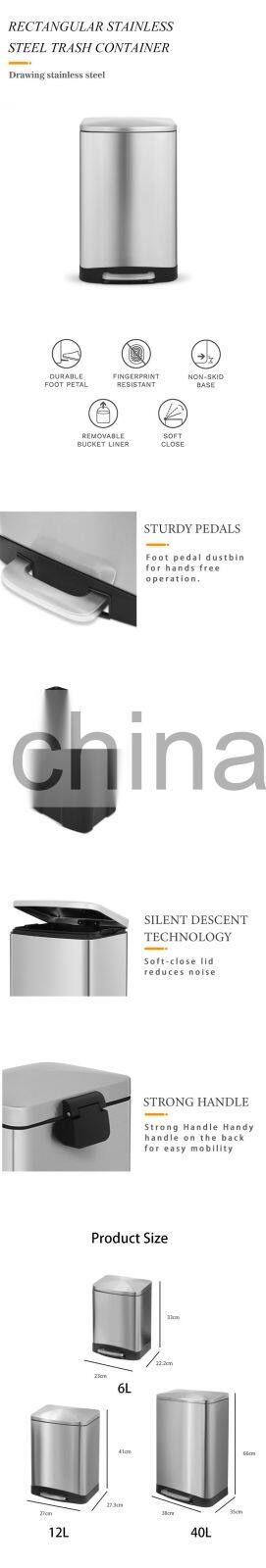 Trash Bucket Dust Bin Soft Closing Dustbin Office Stainless Steel Pedal Garbage CanNegotiableMOQ: 1