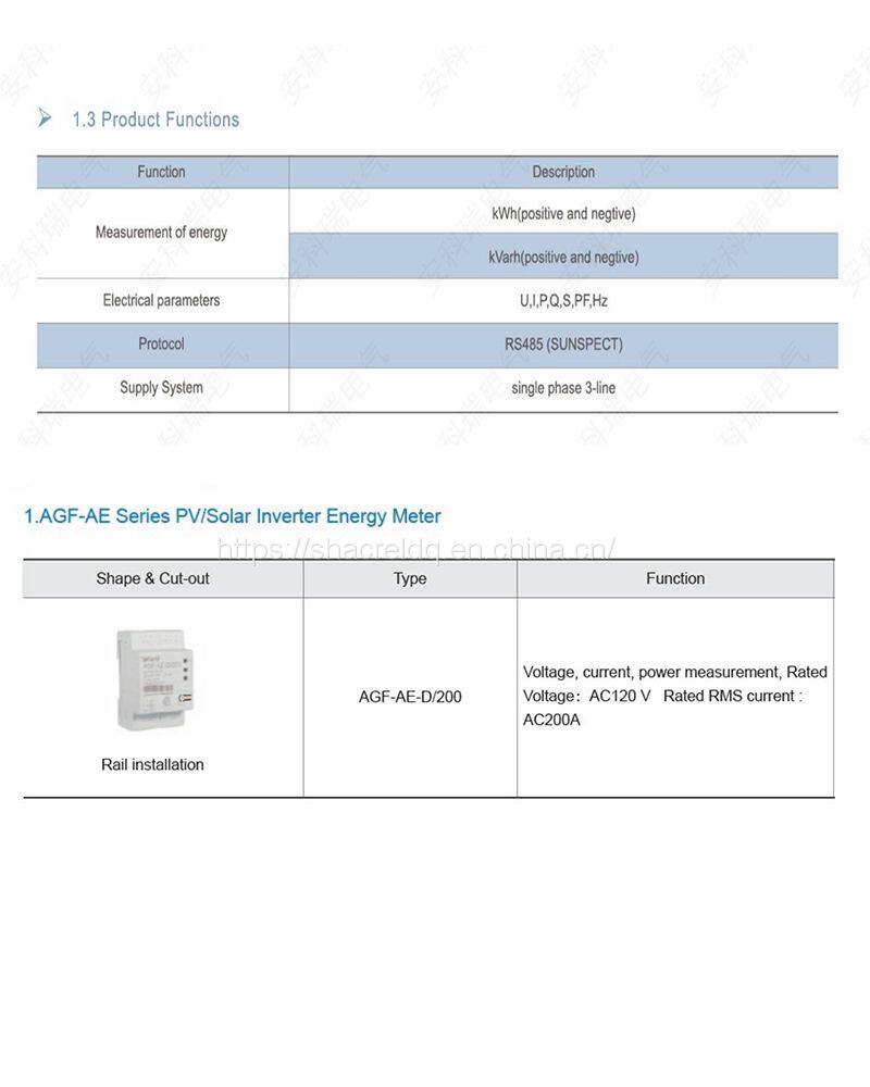35mm DIN Rail AGF-AE-D200 Current 200A AC Paired With External CTs Bidirectional Reflux Monitoring Meter Solar Power MetersUS$ 93.1 - 133MOQ: 1 Piece