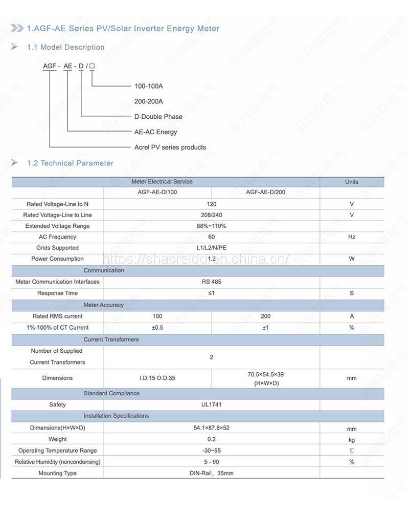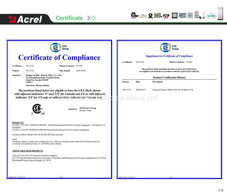 Acrel Brand UL Certificate Electrical Meters For Sale AGF-AE-D200 Current 200A For Solar System