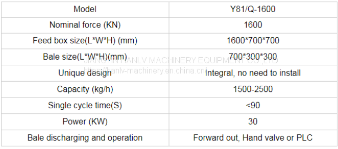 Y81Q-1600 hydraulic scrap metal baler is capable of extruding various metal leftover, steel paring, waste copper, aluminum, stainless steel and scrapped car into regular charging as square colum, cylinder etc. different shapes.By this way, the costs of transportation and refining can be reduced. It also make the transportation easier and faster.