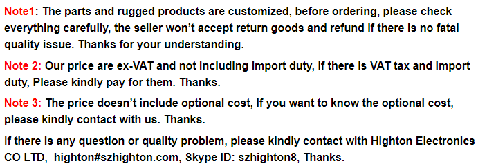 Highton Electronics CO., LTD manufactures all kinds of 4 to 12 inch Android or Windows rugged tablets or PDA Handhelds and other smart terminals, With many Optional functions: NFC, Fingerprint scanner, Barcode scanner, IC/ID card reader, LF/UHF RFID, walki-talkie/DMR, IRIS, Thermometer, satellite phone, ATEX/explosion-proof, your own module, and many other functions you want.