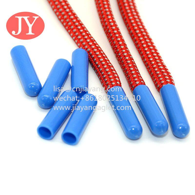 Shoestring Aglet Guangzhou Factory Direct Produce Blue Shiny Plastic Aglet With Round Polyester Drawstring Cord Ends