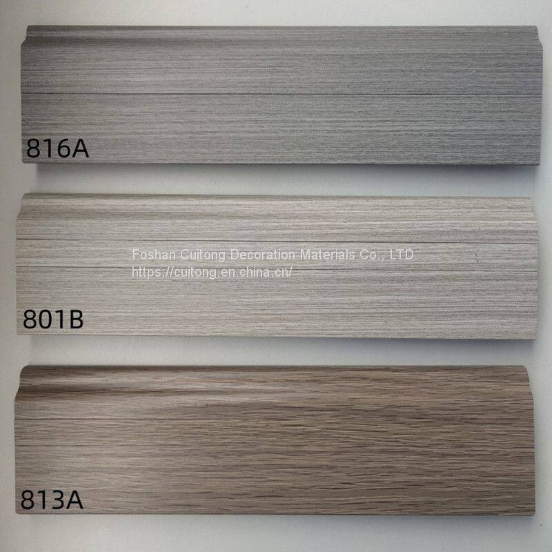 Foshan Wholesale Engineering waterproof corner line black walnut PVC baseboard with nail cover wood grain gray plastic footing line
