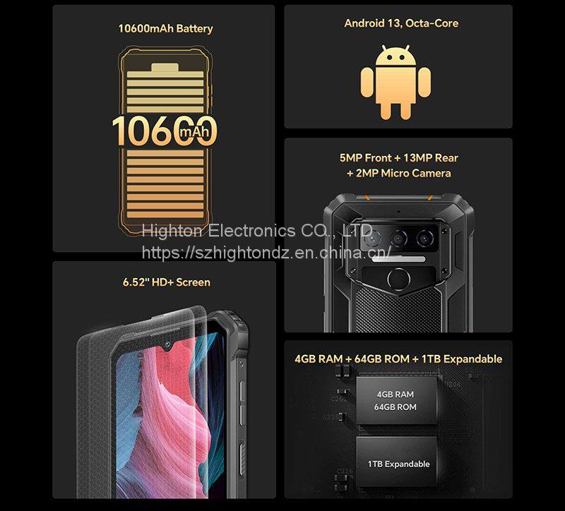 Cheapest 6.52 Inch MTK6765 Octa-Core Android 13 4+64G 10600mAh Fingerprint Unlock NFC IP68 Rugged Phones Waterproof Mobile Phone