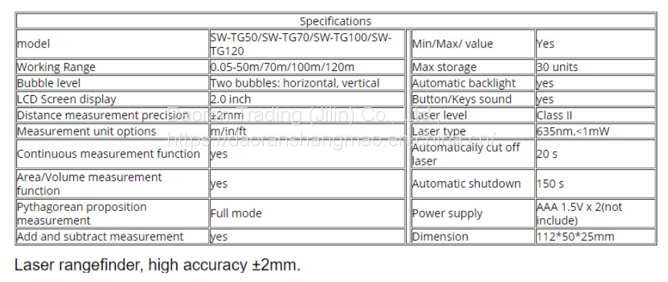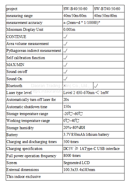 | Measurement Accuracy | ±(2mm+D*1/10000) |