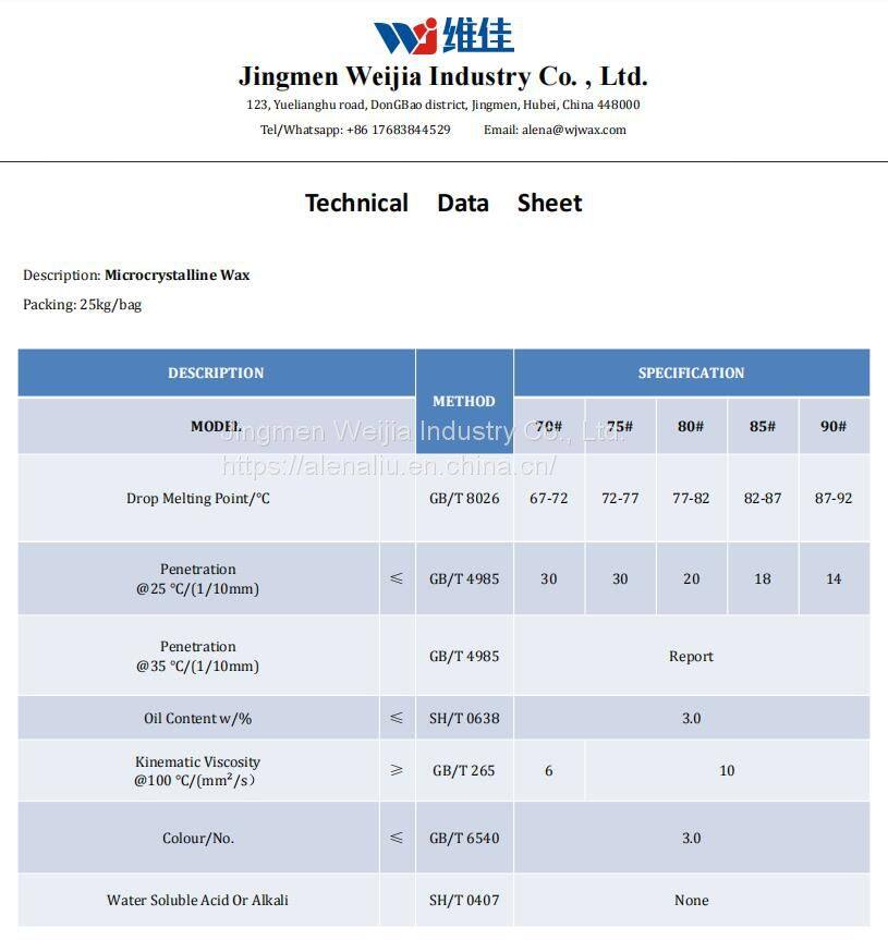 SINOPEC No.70 Microcrystalline Wax With Drop Melting Point 67℃-72℃,Chiese First Class Agent of SINOPEC With the Most Competitive Price & High Quanlity