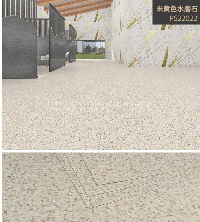 Imitation terrazzo PVC sheet floor gray stone grain plastic paste rectangular stone plastic floor Foshan Wholesale