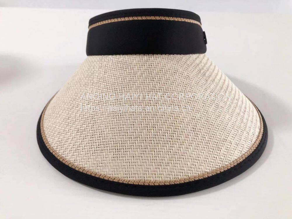 Wholesale Fashion Straw Visor Hat Foldable UPF50+ UV Protection Wide Brim Beach Sun Visor Hat