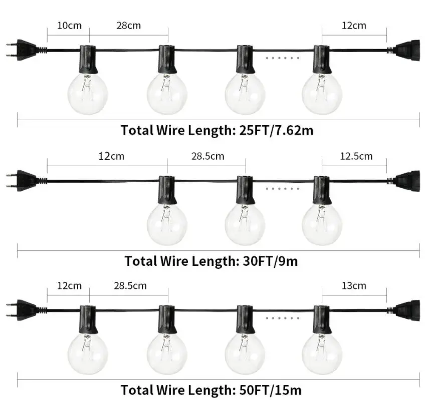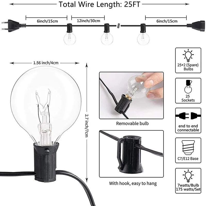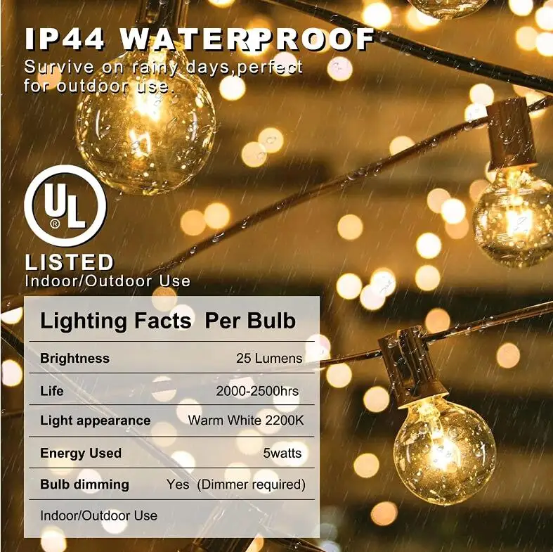 Home > Products > Outdoor solar light > Hot Selling 50ft Shatterproof Outdoor String Light G40 Dimmable LED Vintage Edison Bulbs Commercial Grade Patio Lights