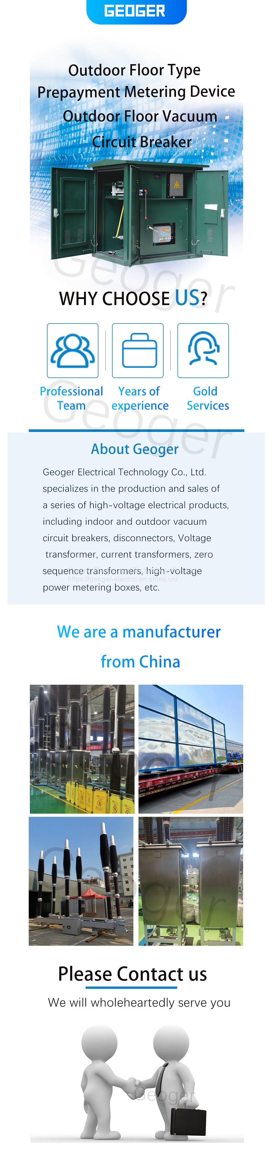 The prepaid metering device is a product that changes the high-pressure metering, switch, and control box on the column to a cabinet structure. It is composed of an integral cast dry high-pressure metering box and a ZW32F intelligent switch combination, and the box is made of stainless steel or iron plate spray plastic material
