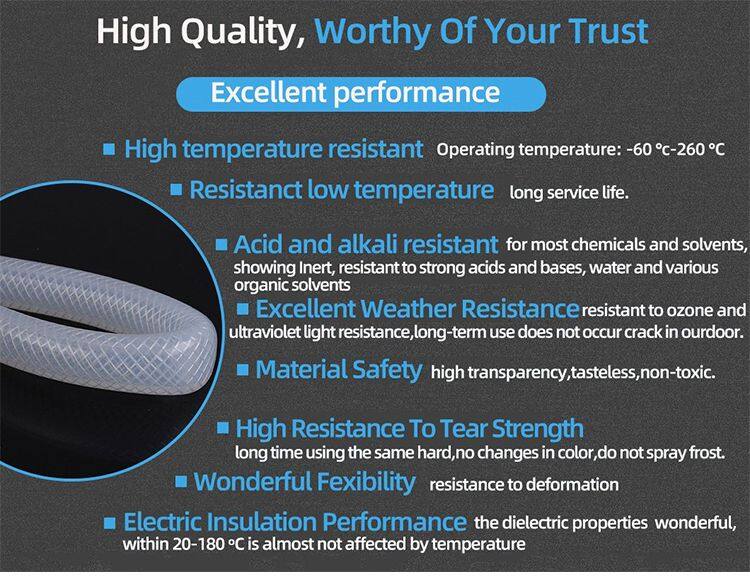Silicone Vacuum Tubing Hose High Temperature Food Grade Silica Gel Braided Tube