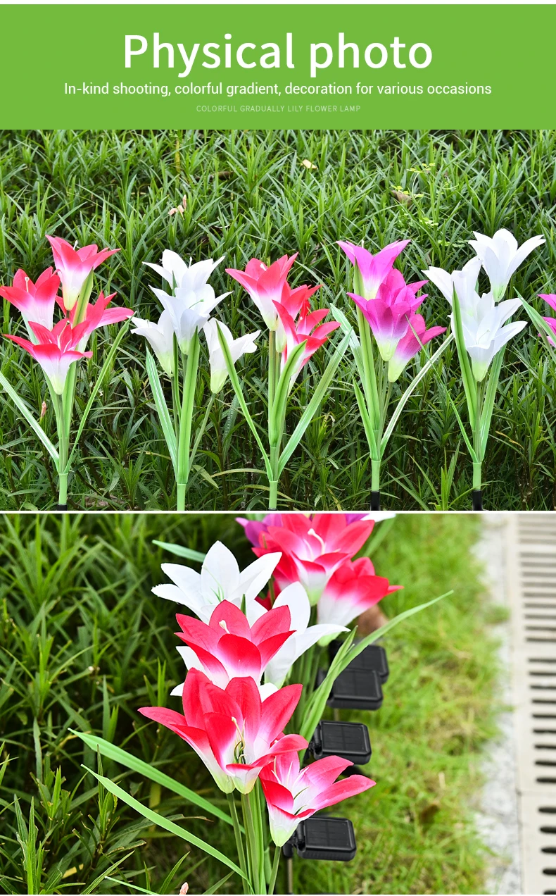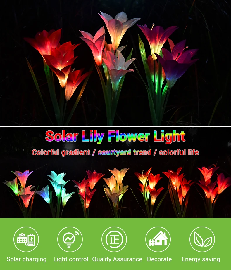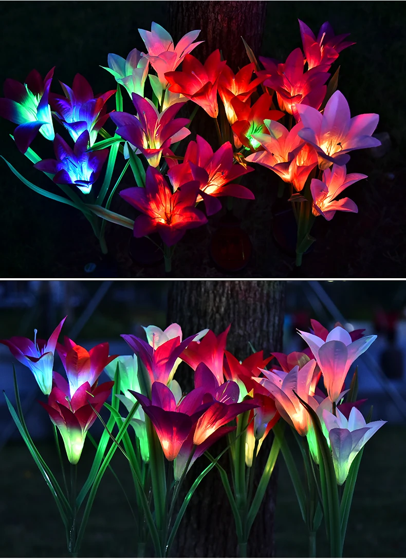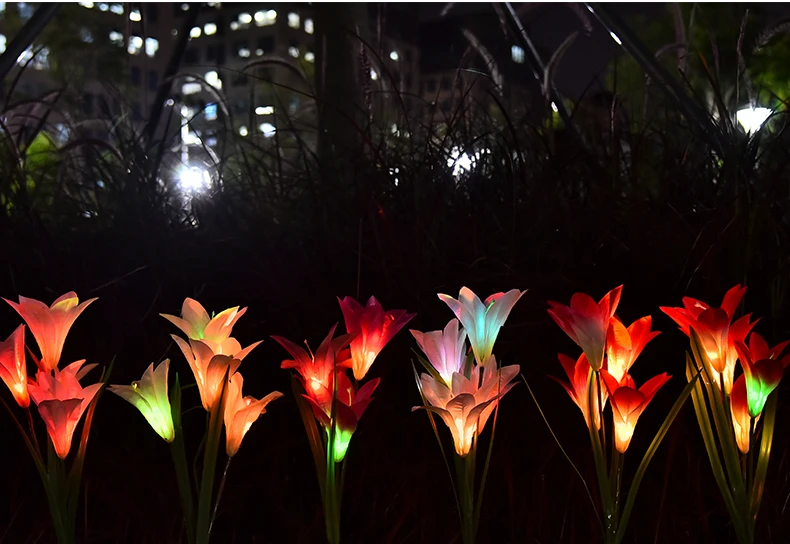Outdoor Solar Garden Lamp Christmas Decoration Ip65 Waterproof Multi-Color Changing Led Solar Lily Flower Lights