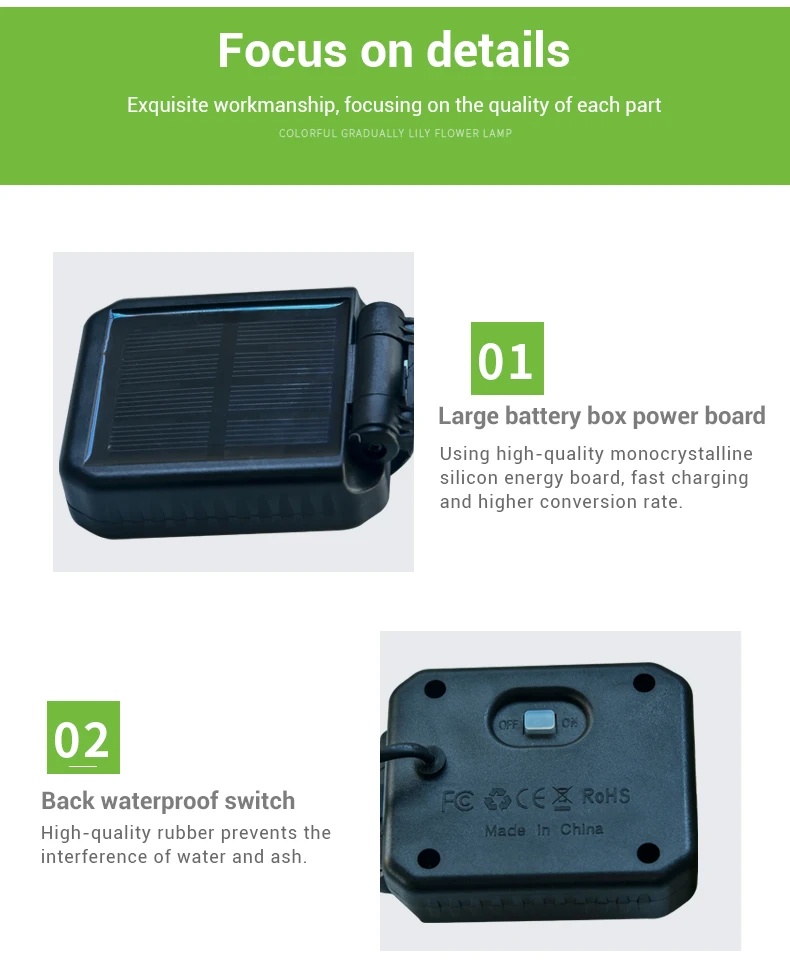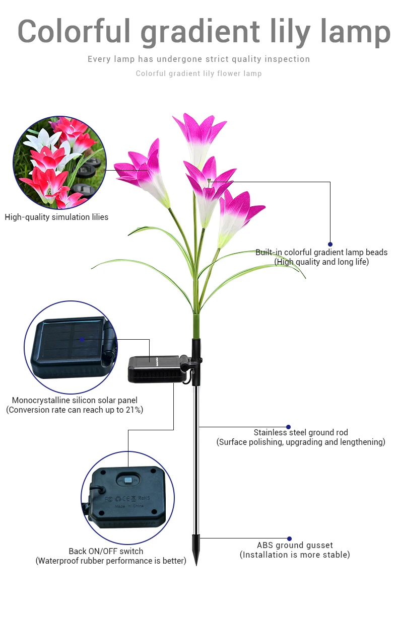 Home > Products > Outdoor solar light > Outdoor Solar Garden Lamp Christmas Decoration Ip65 Waterproof Multi-Color Changing Led Solar Lily Flower Lights
