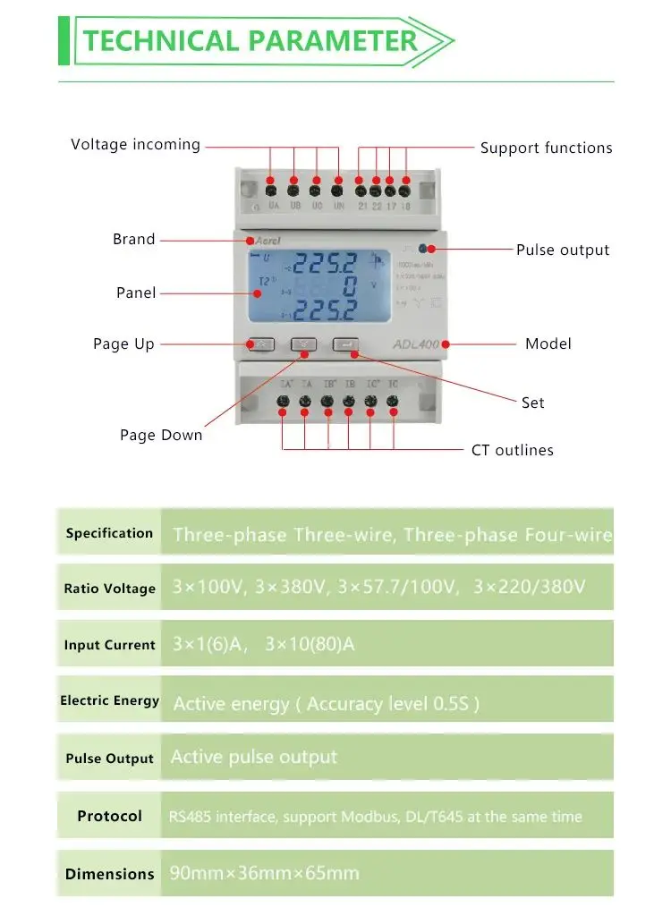Acrel ADL400 3 Phase Digital Smart Energy Meter With Modbus-RTU