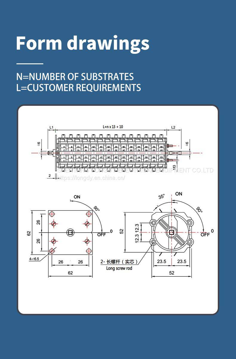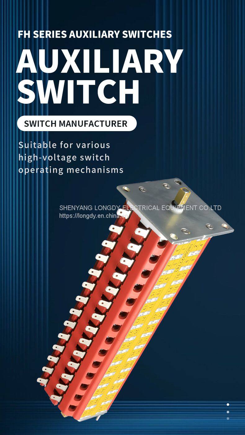 Auxiliary switches of the FH series are one of the components of high-voltage equipment and combine the characteristics of auxiliary switches and changeover switches. Compared to conventional auxiliary switches, the FH series auxiliary switches are more flexible in terms of contact angle control and can be used in different combinations to realize more diversified control requirements of customers. Compared to manually operated change-over switches, FH series auxiliary switches are more conveniently connected to the actual operating mechanism for mechanical transmission control. FH series auxiliary switches are suitable for controlling the closing, breaking, interlocking and signaling circuits of all kinds of high-voltage switch operators, and can also be used as changeover or combination switches.