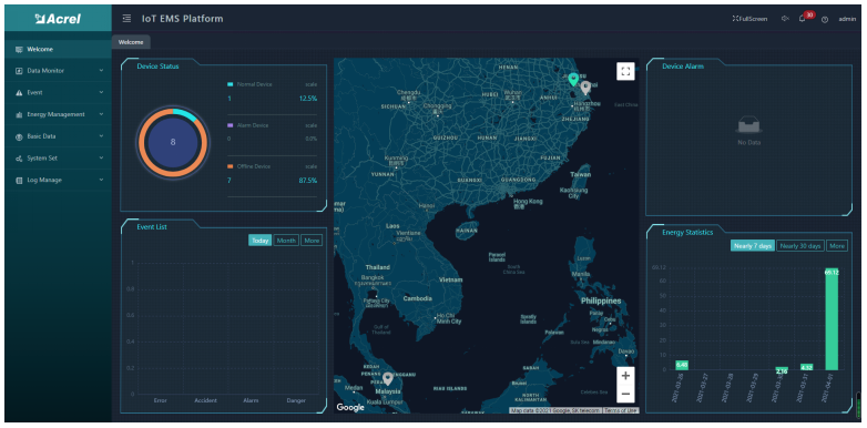 It can provide device status, event list, device alarm information and energy statistics.