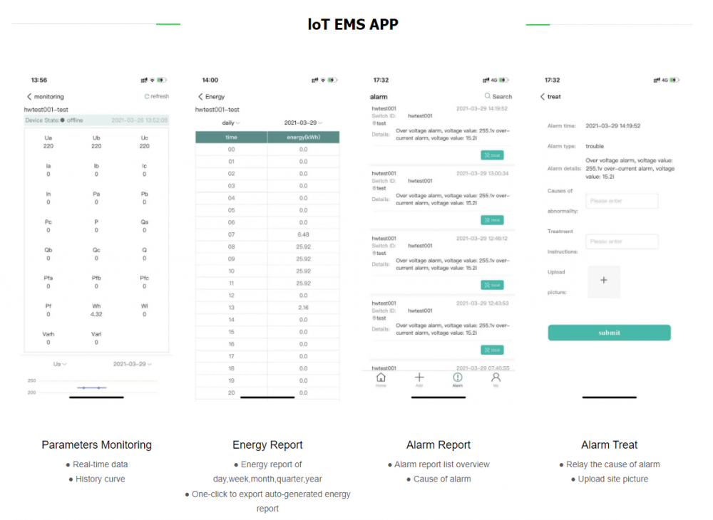 4. Alarm: Once an alarm occurs on the device, the alarm data will be uploaded in real time and pushed by the app to relevant person.