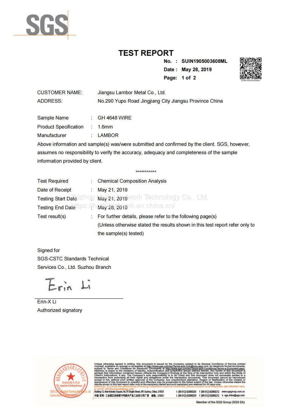 GH4648 is a Ni-Cr-based precipitated hardened deformed superalloy used at a temperature below 900 ° C and available for short use below 1100 ° C.Alloy is added with high cr for good thermal corrosion resistance.At the same time, the alloy has moderate strength and good fatigue resistance and creep resistance, good cold processing performance and welding performance.