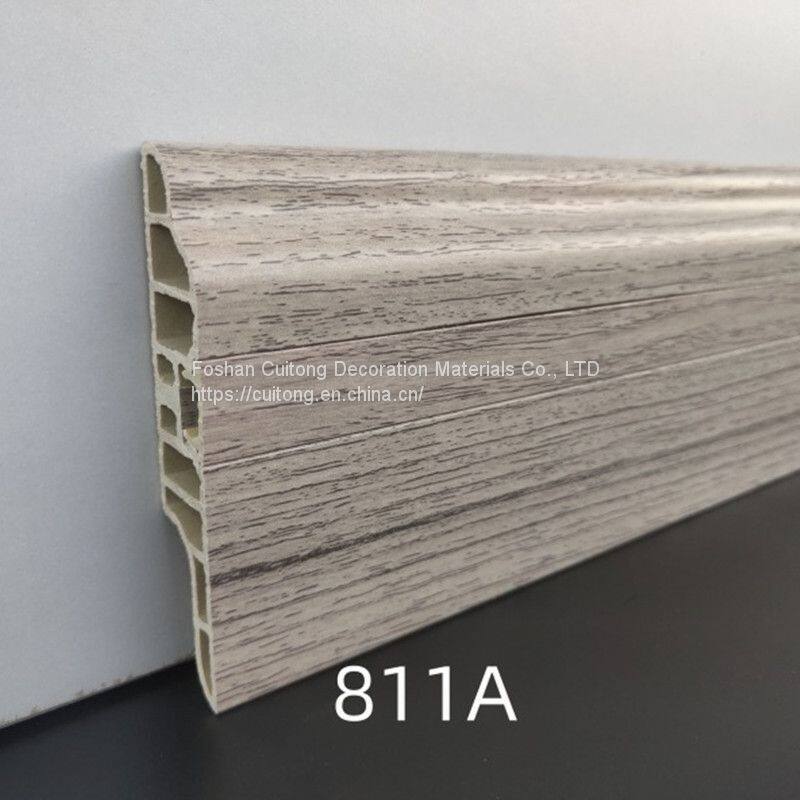 Hidden nail pvc baseboard 8cm wood grain floor line waterproof floor line Guangdong wholesale wall corner line closing line